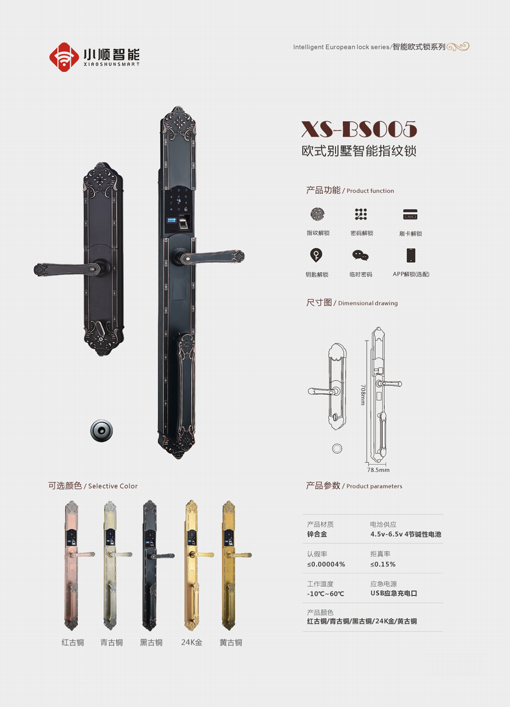 欧式别墅智能指纹锁:XS-BS005