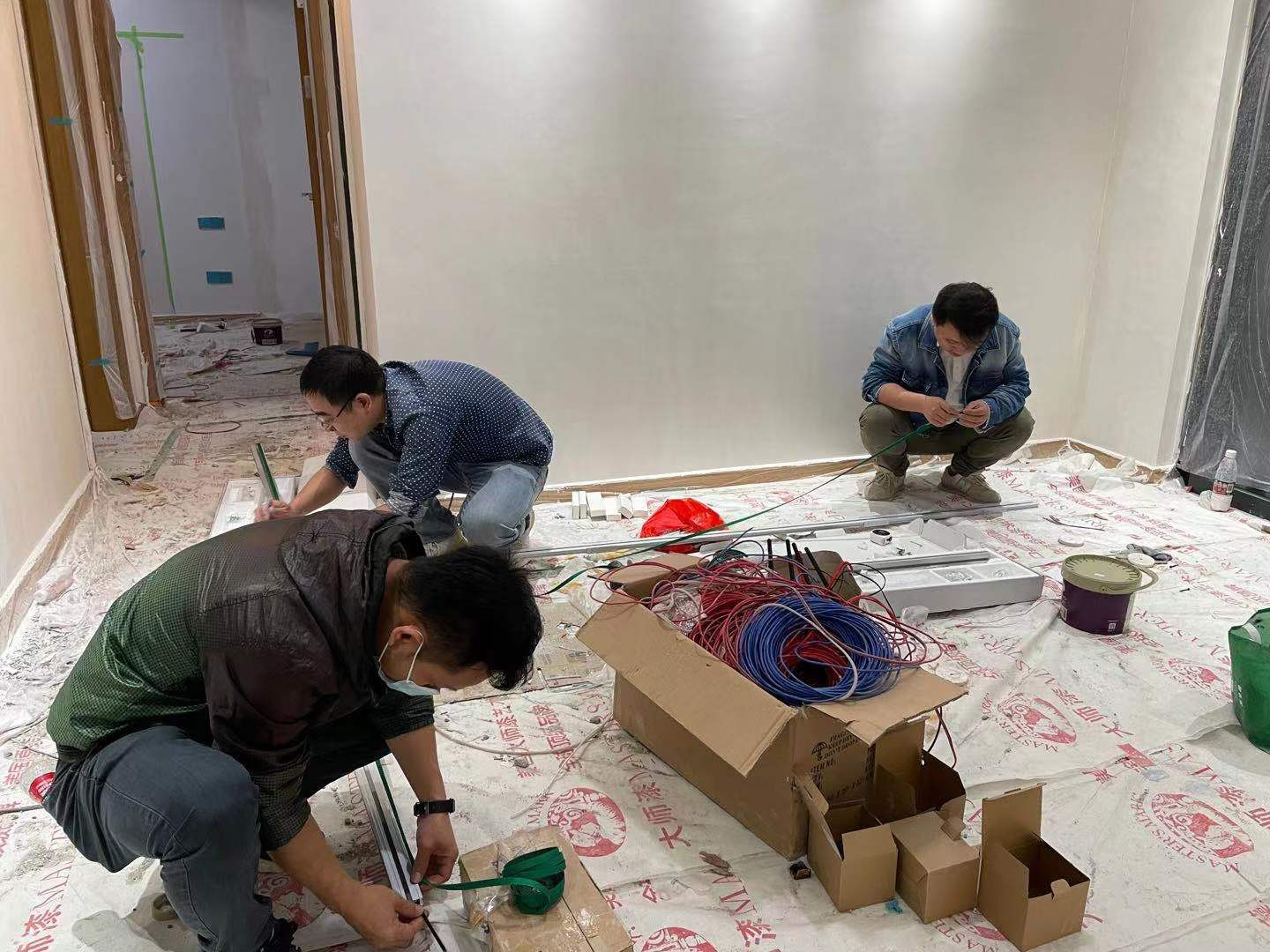 小顺智能的技术工程师已经日夜兼程赶工,从样板房空间分析,制定智能系统解决方案,布局智能灯光的线路改造,以及智能开关安装,调试,完整的打造出符合业主们一个高效的智能灯光生活新体验,小顺团队只用48小时完美交付。