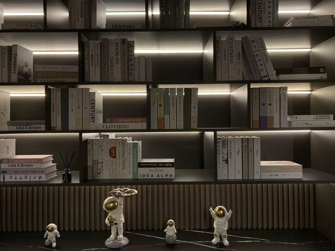 通过门口,首先进入视野的是广阔的大客厅,格际智能,以自己独特的智能灯具:包含射灯、导轨灯、RGB灯带等等,暗装在天花板、走道、餐厅,书架、酒柜等区域。
