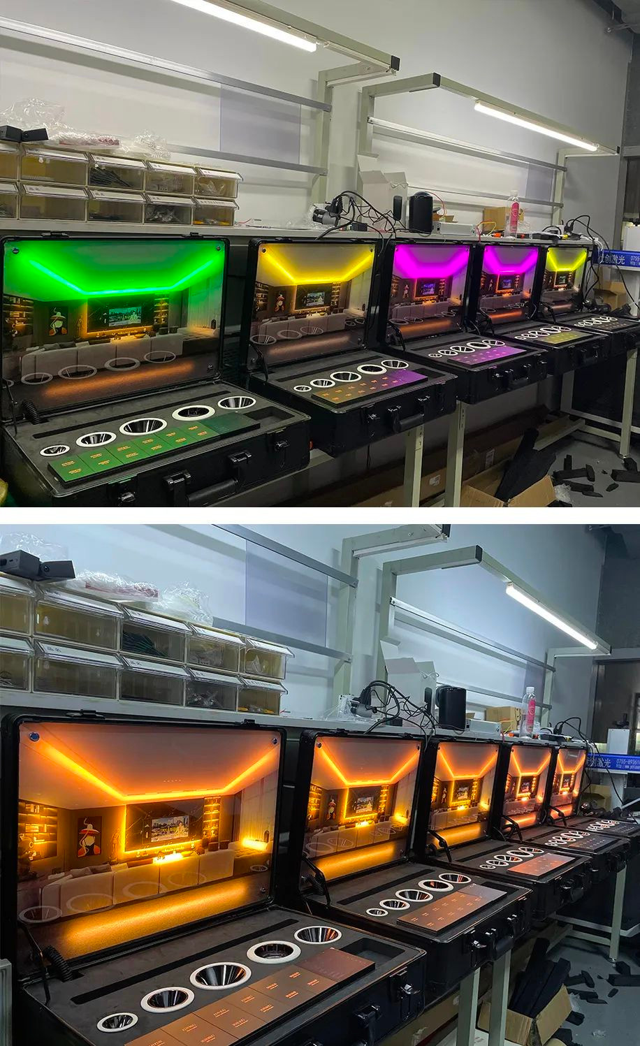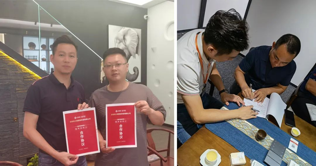 除了培圳,我们还有实物输出,就是展柜和展箱,展柜可以让合伙人摆放在门店对外展示功能与产品的体验,免去开体验店的高额资金投入问题,而展箱则方便销售人员拎着它出差跑业务对用户展示效果。