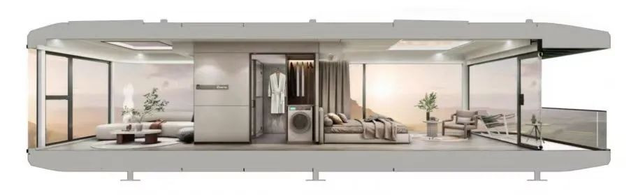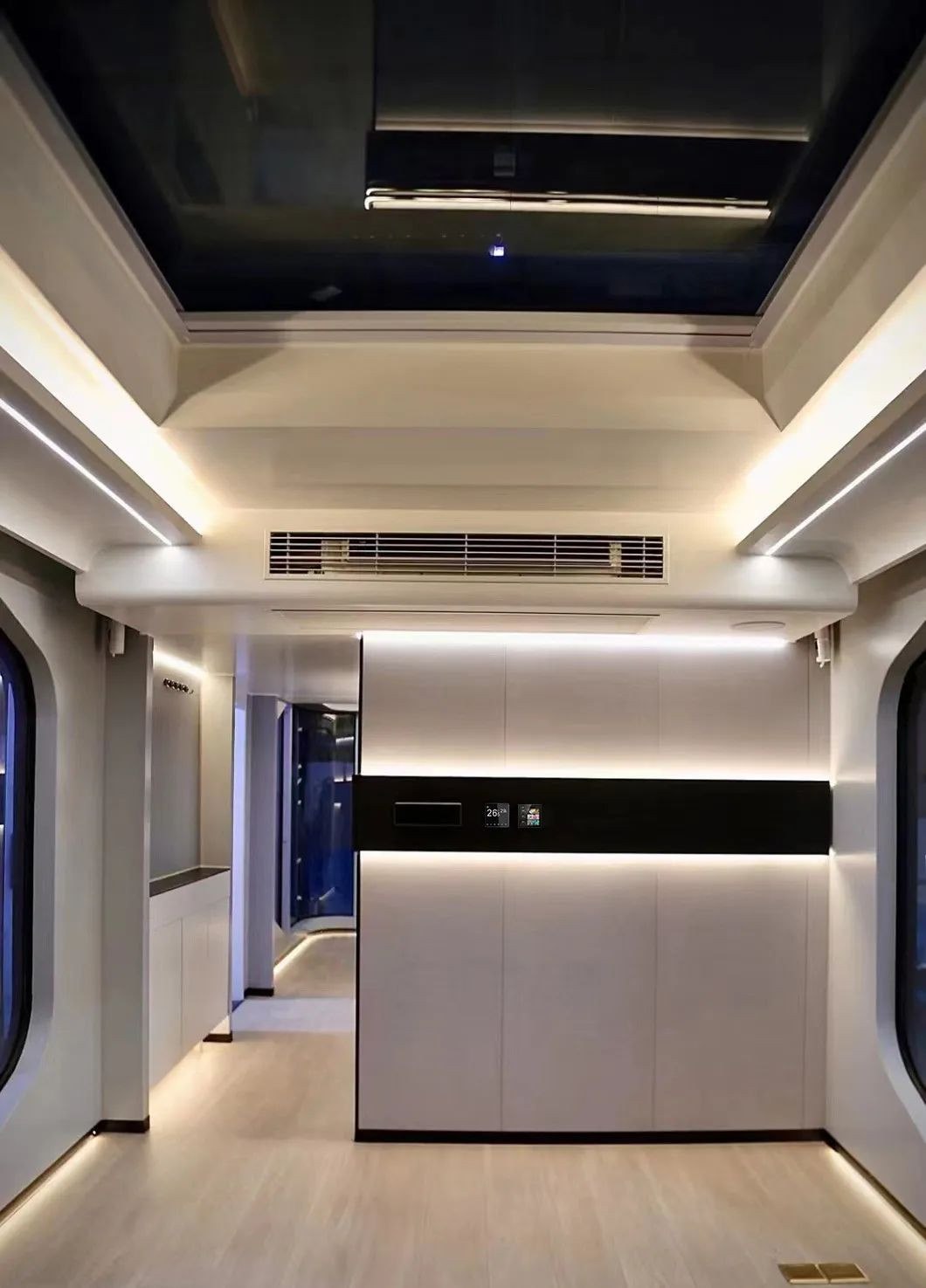 这种太空舱外型,有的设计像一部巴士,有的像一部房车,外型饱含科技感,“麻雀虽小,五脏俱全”,里面的房间生活配套系统设施一应俱全。