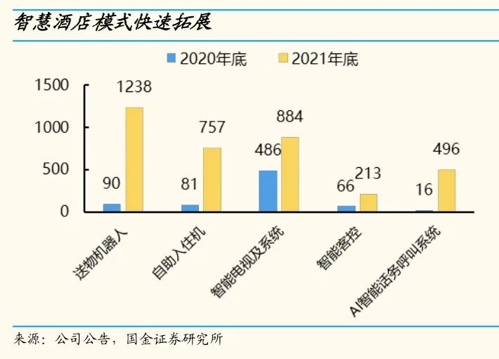 4)智能化后有利“扩张”,从供需角度分析,“扩张”与“升级”仍是酒店行业未来两大趋势。酒店扩张发展是一种必然,符合资本属性与产业发展逻辑。对于单体酒店,在市场不断被挤压的情况下可升级智能化做为实力卖点,向新型经济发展的方式转型,通过接入各大网络商旅平台和酒店预定平台进行智能化标签更新,迅速突破困境围剿,智能化转型成功后在实力允许范围内进一步扩张酒店数量,提高品牌效益和竞争力,建立可持续发展的战略!